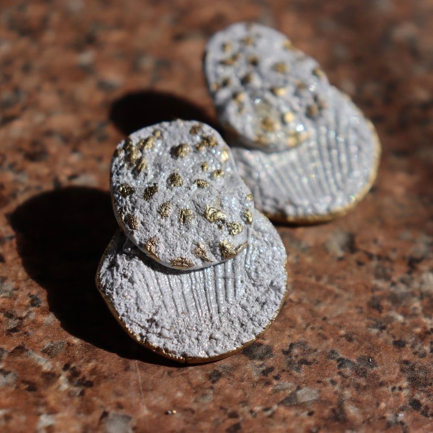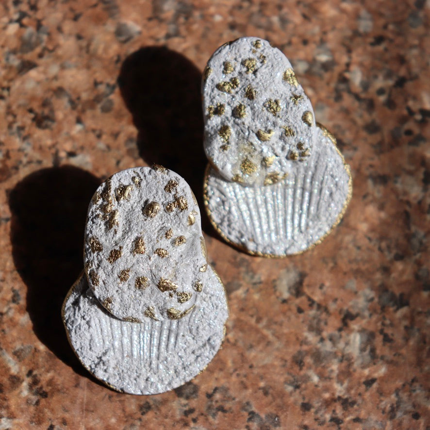 This new collection is giving serious mermaid energy. I had so much genuine fun making these. I used real shells to imprint their beautiful textures onto clay, creating that soft, off-white, bleached coral look you find along the beach. Each pair feels like a little ocean treasure.