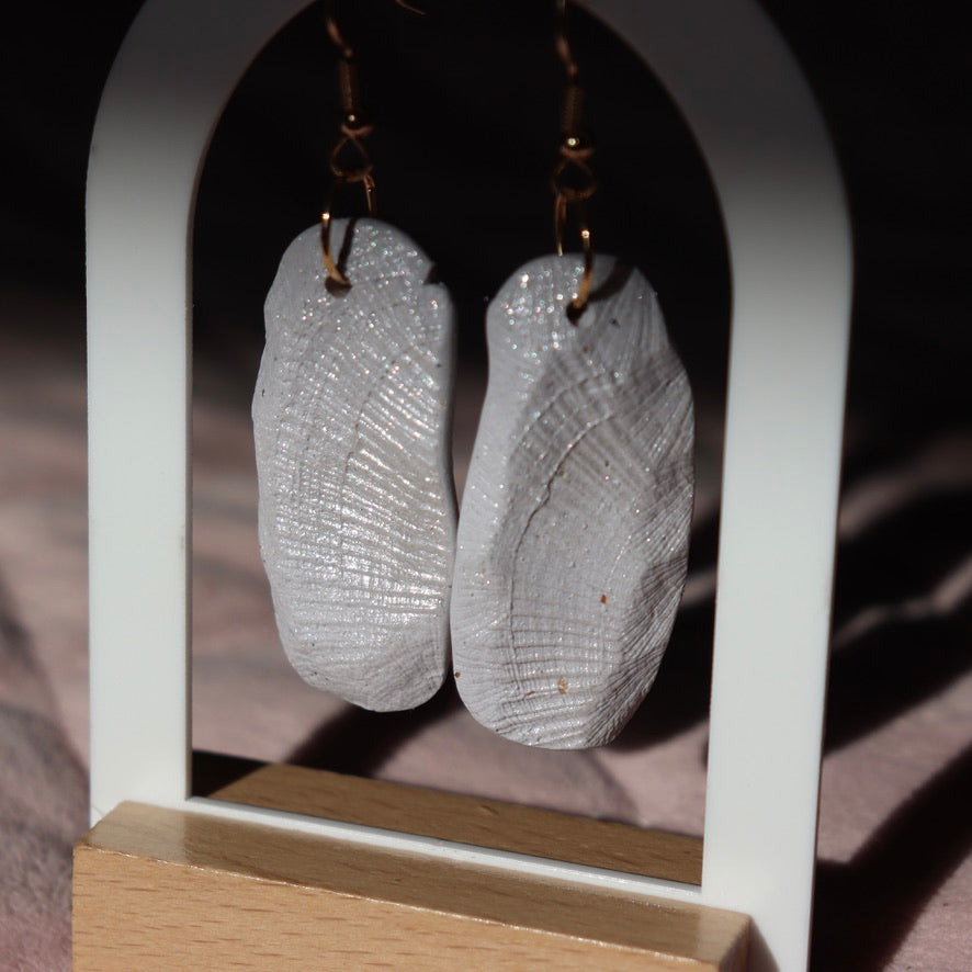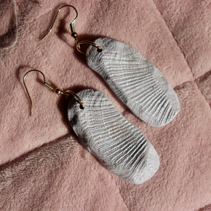 This new collection is giving serious mermaid energy. I had so much genuine fun making these. I used real shells to imprint their beautiful textures onto clay, creating that soft, off-white, bleached coral look you find along the beach. Each pair feels like a little ocean treasure.