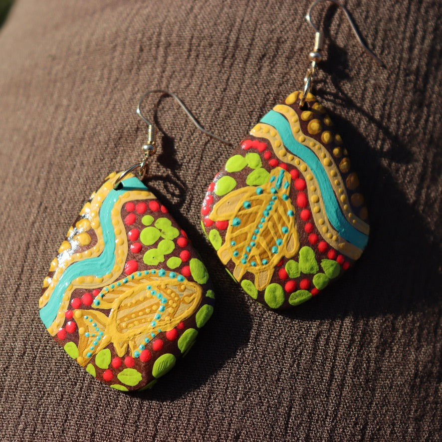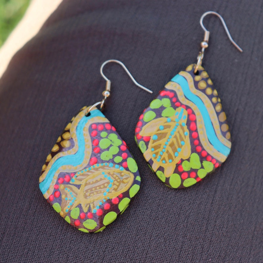 Each pair is hand-painted on wood, bold, and totally unique, just like the reef itself.